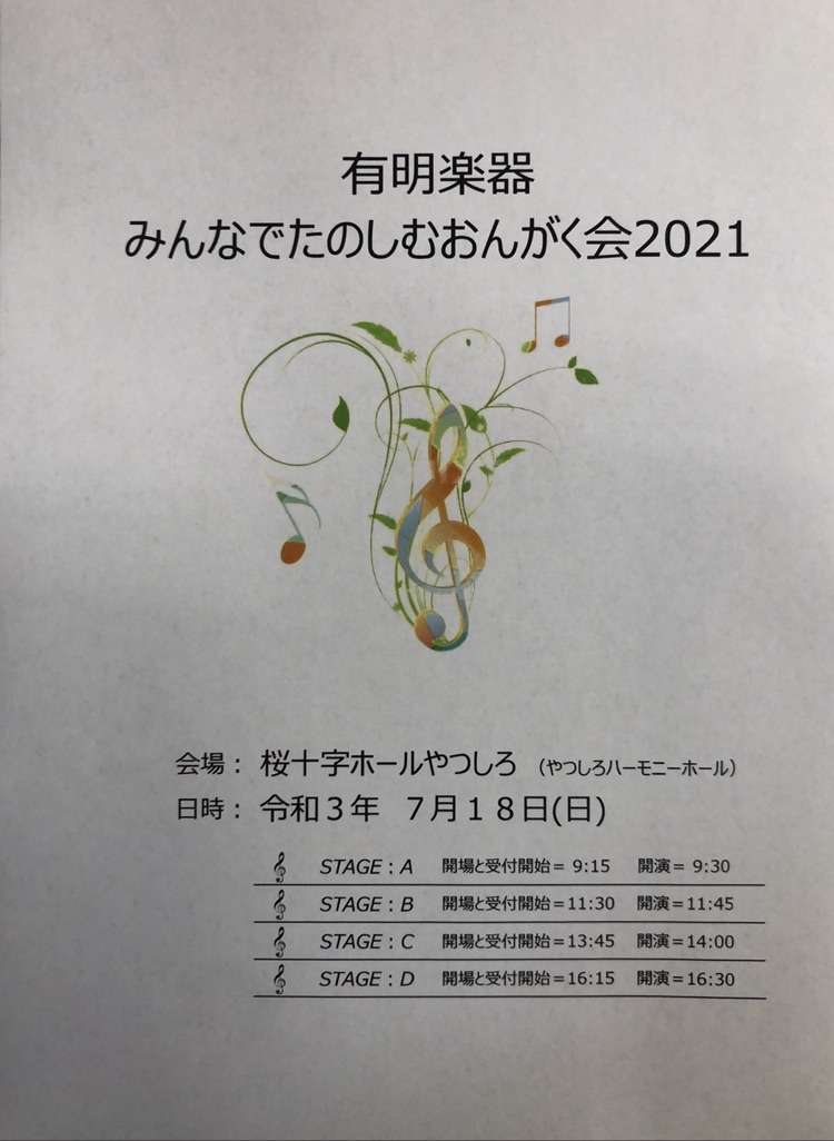 今年は「有明楽器みんなでたのしむおんがく会2021」と名付けました。