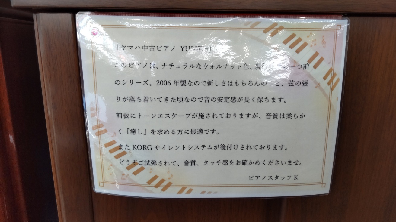 また、美品中古アップライトピアノや、手に入りにくくなっておるヤマハ電子ピアノ各種も、台数は限られますが在庫を取り揃えております。