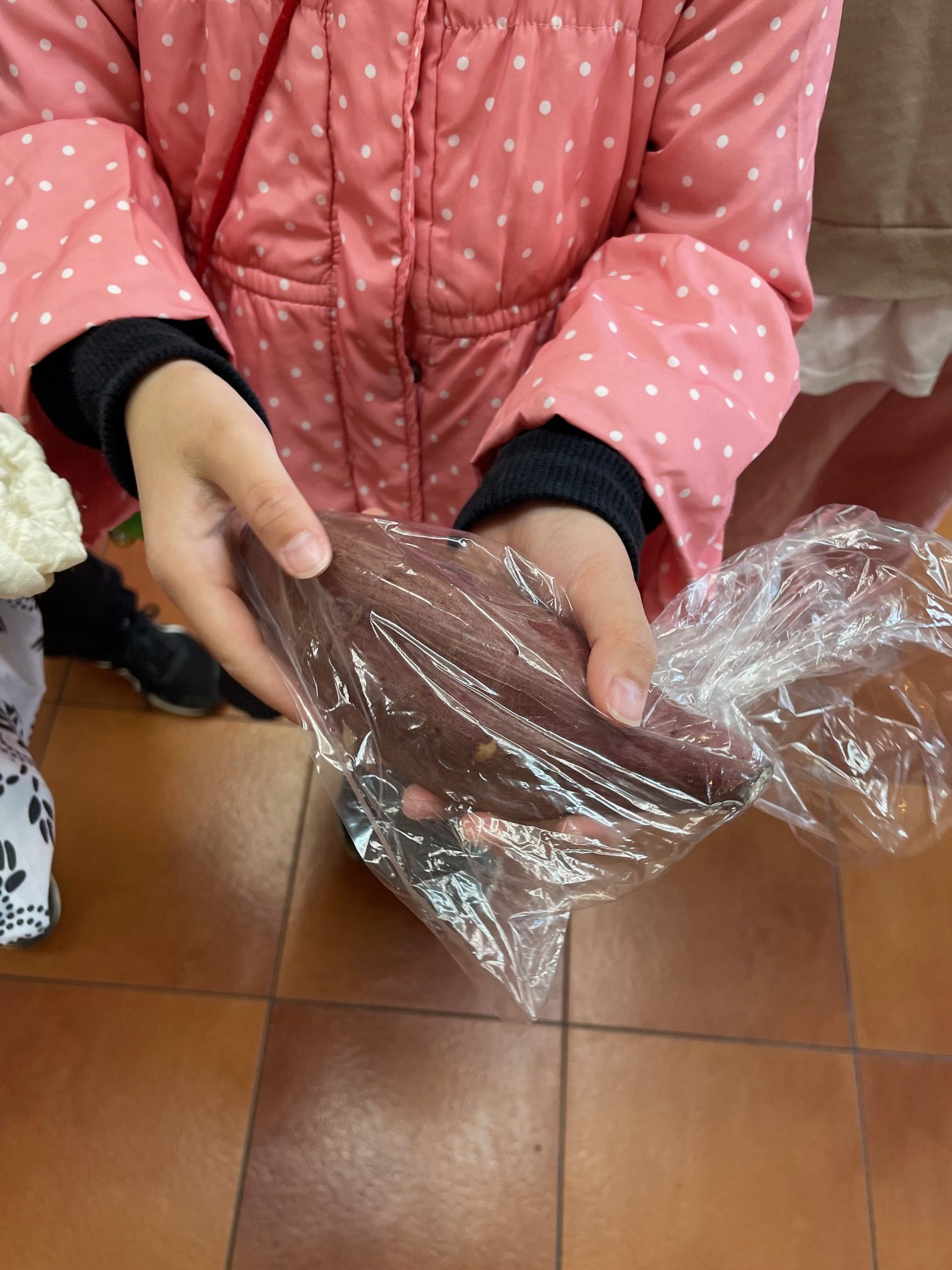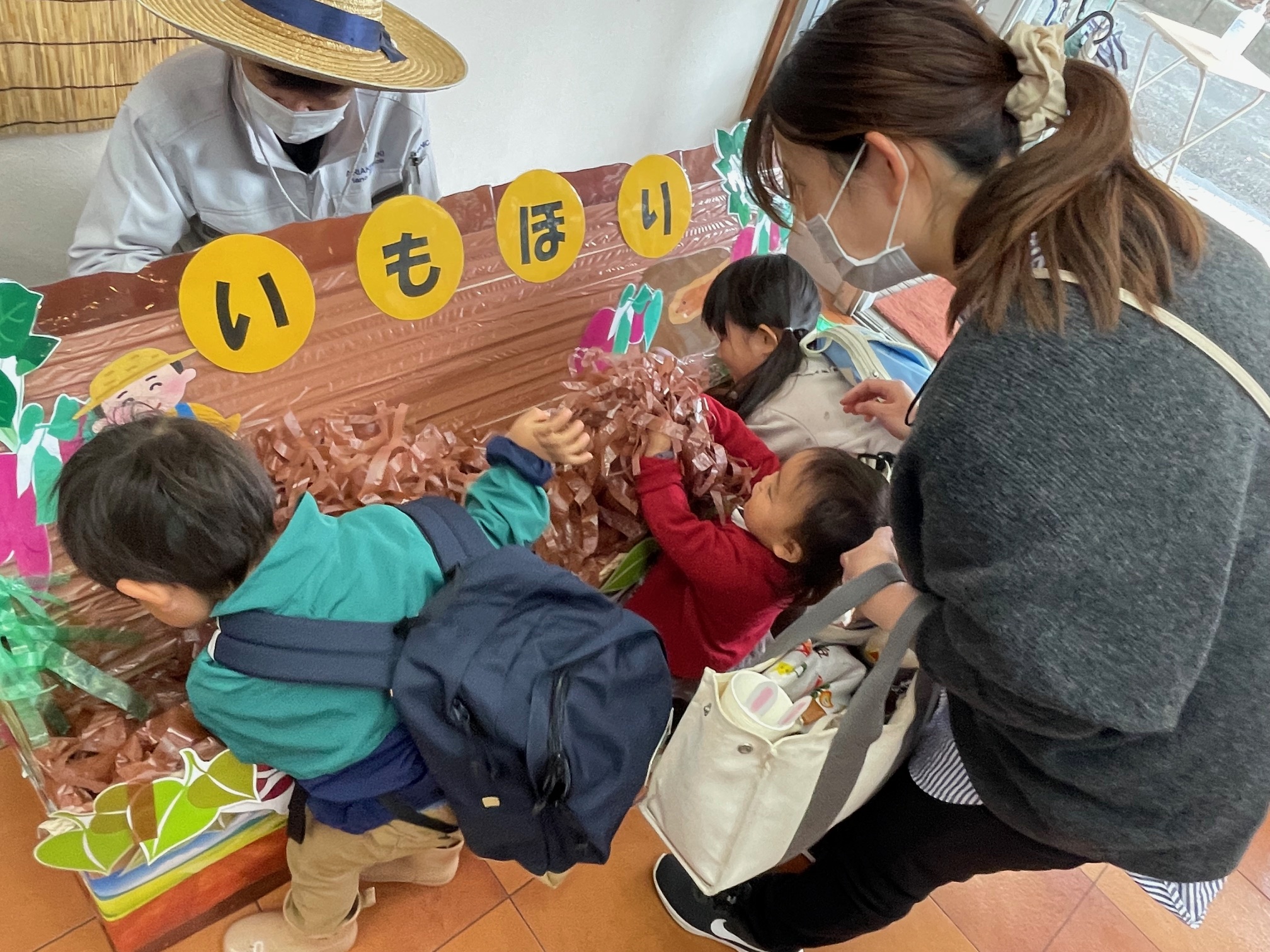 土にみたてた畑から、スタッフが隠したお芋を探しました!
