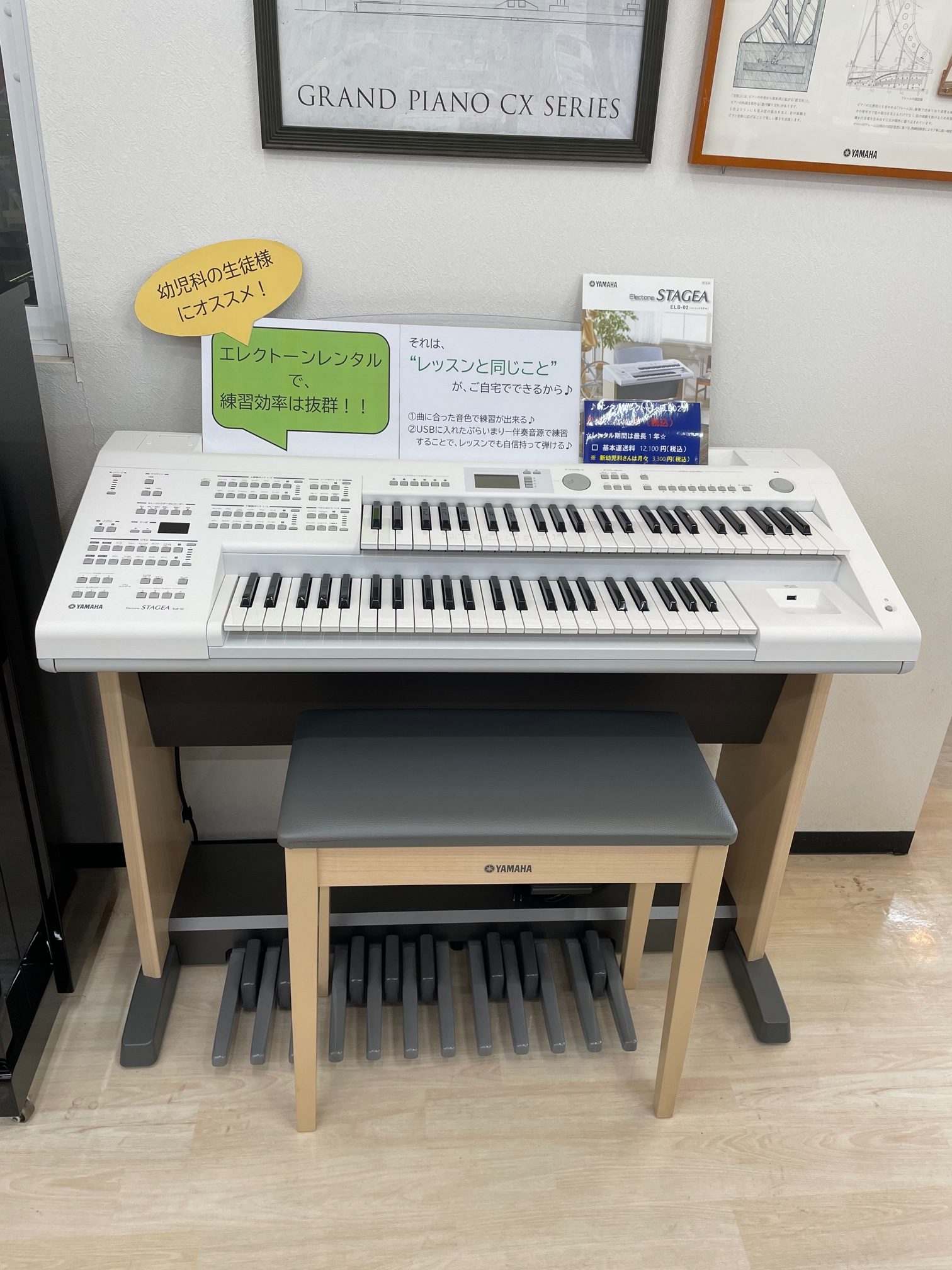 ちなみに、このエレクトーンをレンタルして、ご自宅でレッスンと同じように練習していただけるレンタルプランもございます。(幼児科の生徒様レンタル料→月々¥3300)