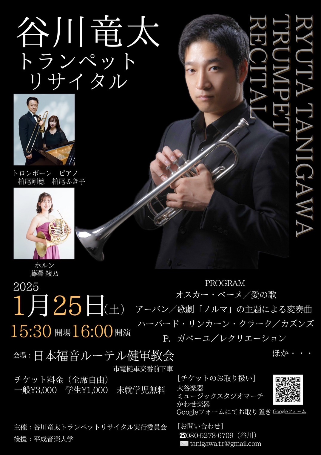 有明楽器でご活躍中のトランペット講師「谷川 竜太」先生のトランペットリサイタルのご案内です。