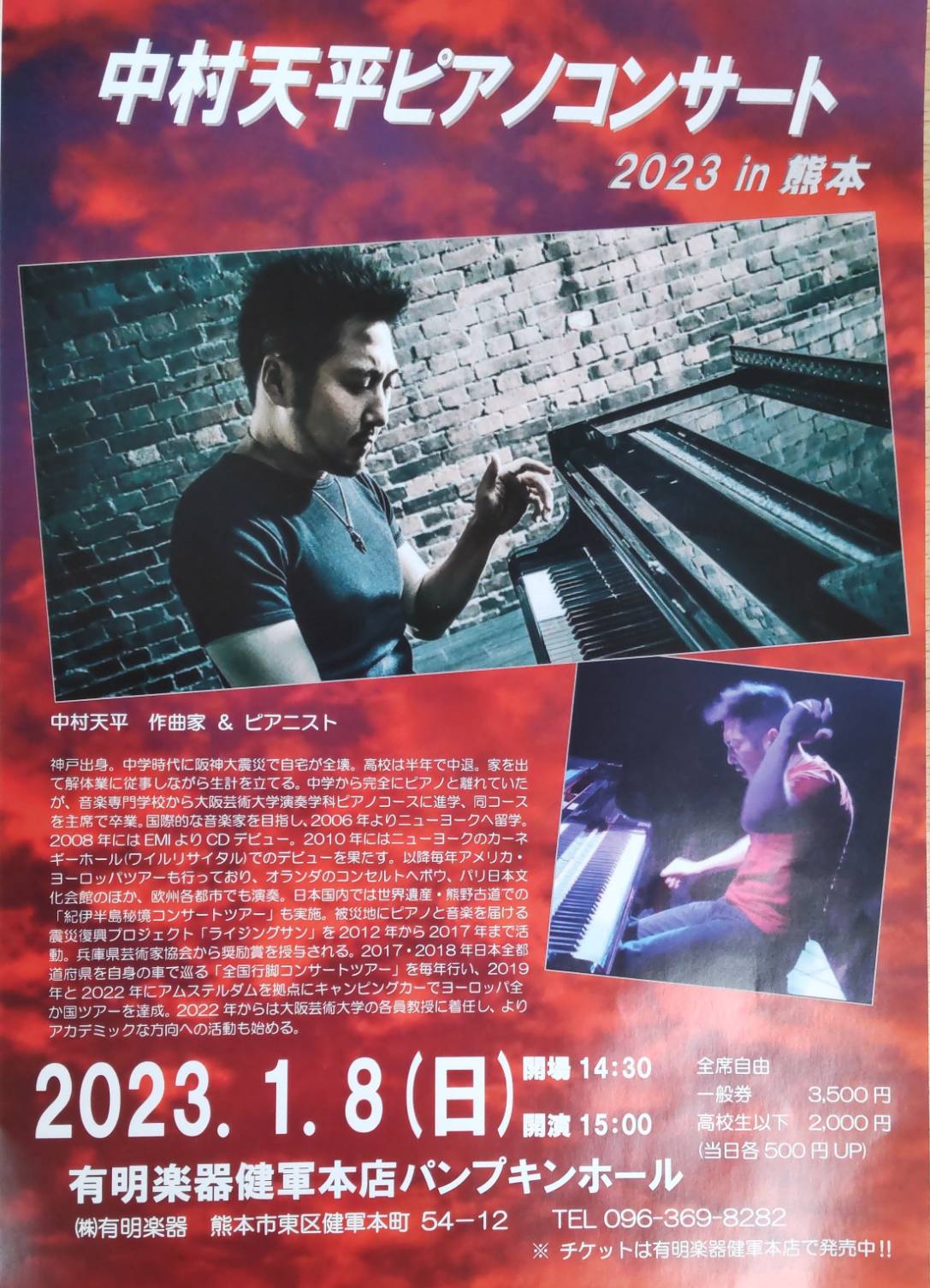 有明楽器健軍本店マネージャ―菊池が、10年以上も推し続けている『ピアニスト中村天平』について少し語らせて下さい!!