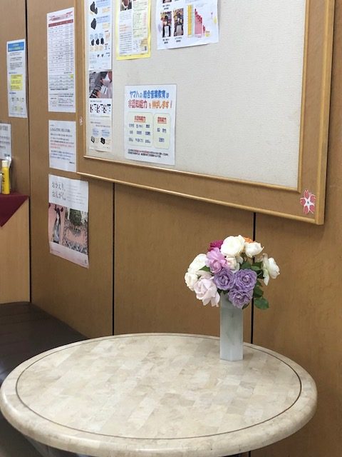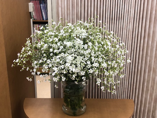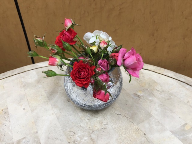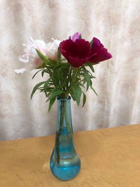 下は、スタッフがそれぞれ自宅から持ってきた花々です。