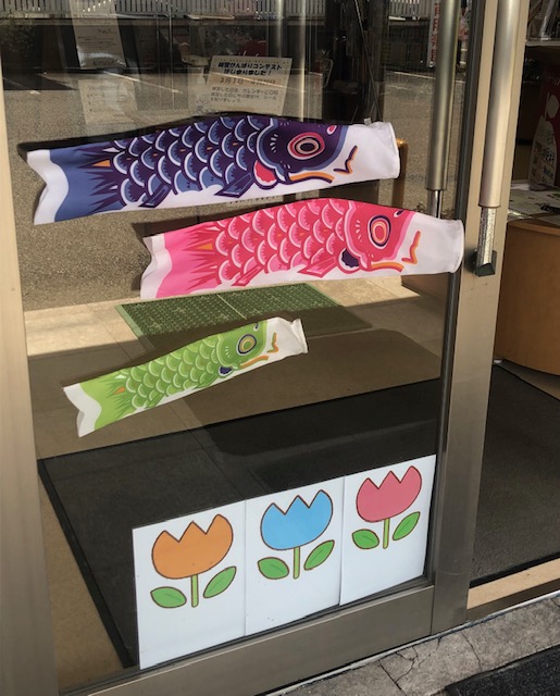 そんな皆さんを、明るくお迎えしたいと「こいのぼり」を飾ってみました。