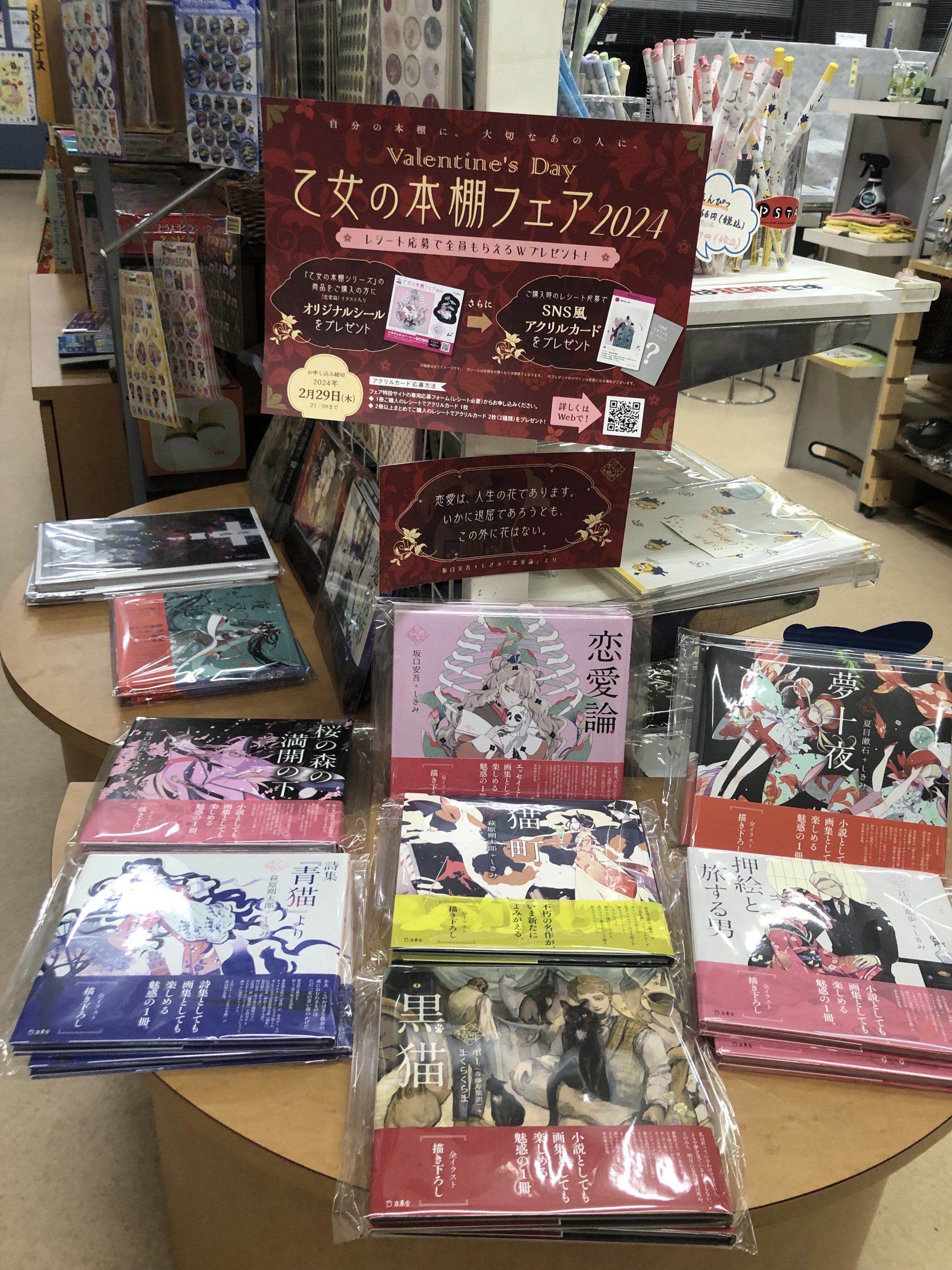八代支店では、2月のバレンタインに合わせて「乙女の本棚フェア2024」を開催中です。