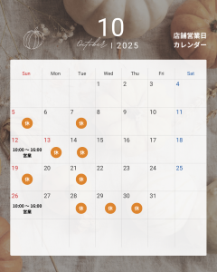 10月は12日と26日の2日間は10時から16時まで営業致します。