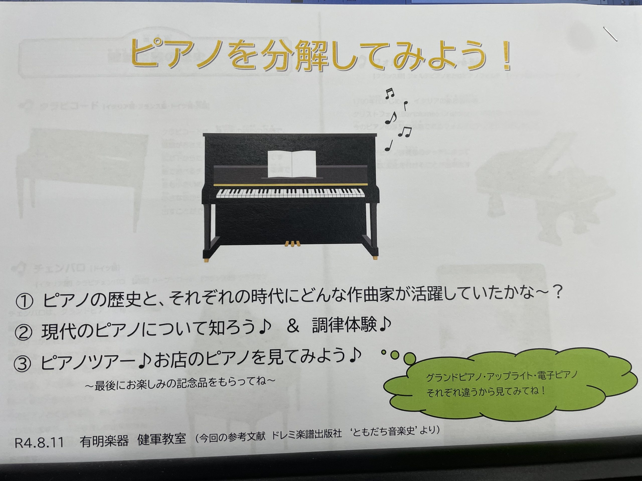 鍵盤スタッフ有徳から、電子ピアノ、アップライトピアノ、グランドピアノの話をさせていただきました 😀