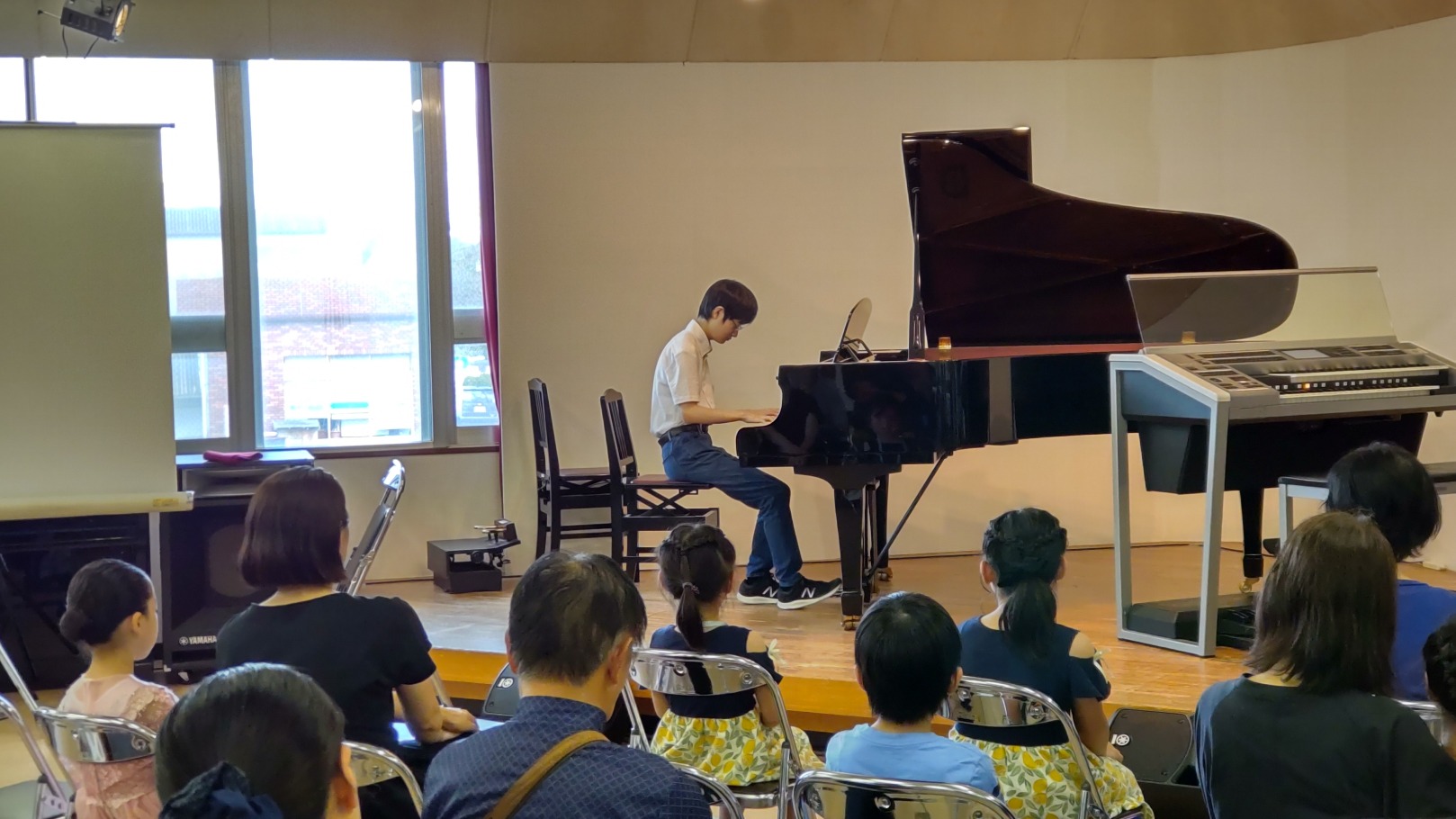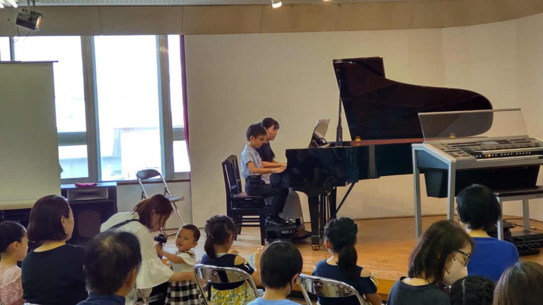 敬老の日コンサート開催しました~♪ 投稿日 2024年9月17日 9月16日敬老の日に因んで、『オンステージ~敬老の日コンサート』を開催しました♪ 大好きなお祖父ちゃん。お祖母ちゃんを招待してのオンステージ! 事前に用意したコメントは、司会が読み上げ、日頃の感謝を言葉に、そして思いをピアノやエレクトーンの演奏で届けました~♪遠方にお住いのお祖父ちゃんお祖母ちゃんには、動画で届けます♪ 演奏後のインタビューで、照れながらも感謝の気持ちを伝えられました。 みなさん素敵な演奏でした!ありがとう‼ DSC_2761 DSC_2741