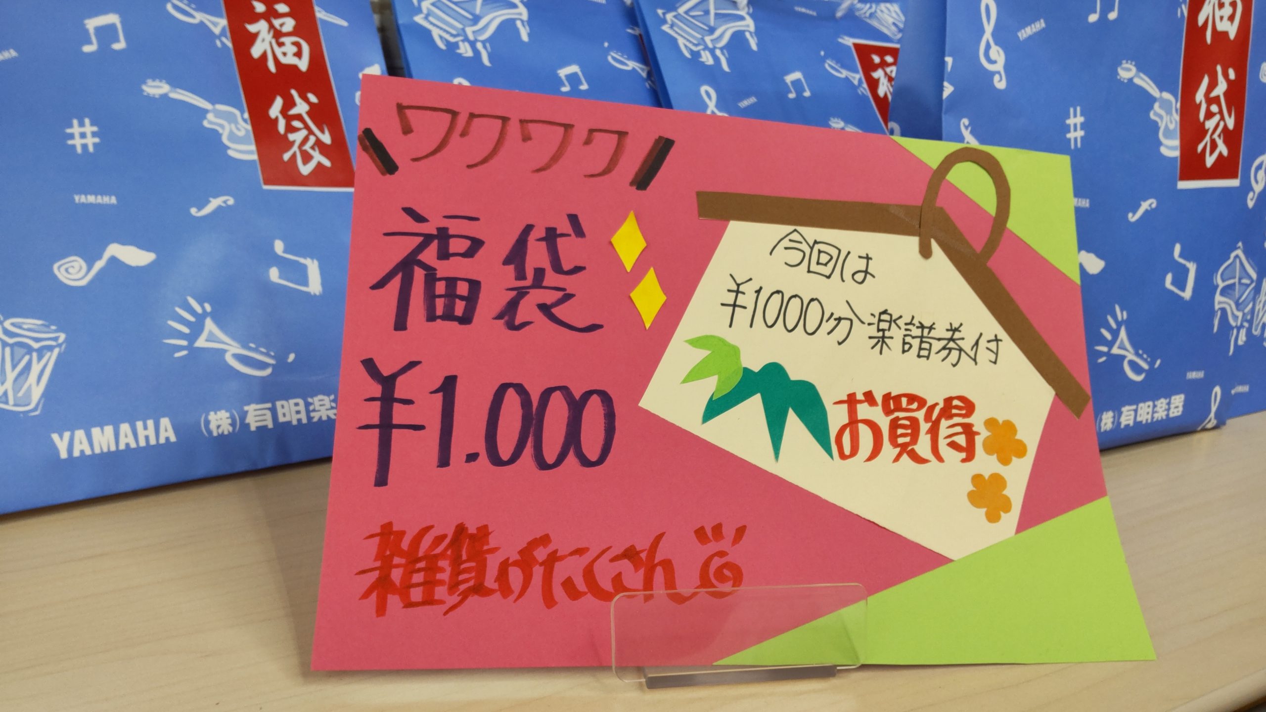 明けましておめでとうございます♪ 投稿日 2023年1月4日 明けましておめでとうございます。 お天気に恵まれた三が日、お日様の光だけで幸せな気持ちになることが出来ました。 さて、有明楽器健軍本店は本日から営業致しております。 毎年恒例の『福袋¥1,000』には、ファンシーグッズと共に、ナント1,000円の楽譜券が入っております。早い者勝ちです~~~! 2023年本年もどうぞよろしくお願い致します。