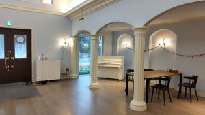この白いピアノを、荒尾町の『福祉センターAQUA』に納品させて頂きました🎵